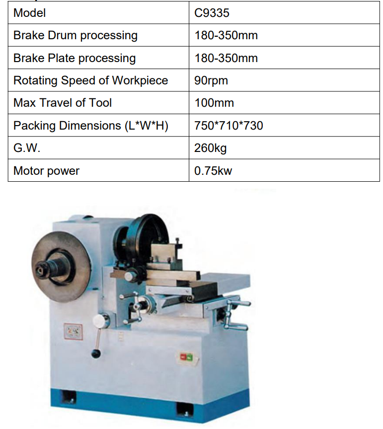 The Brake Lathe C9335 can process brake drums and plates ranging from 180mm to 350mm.