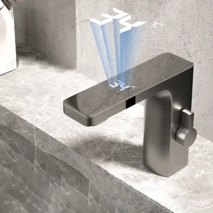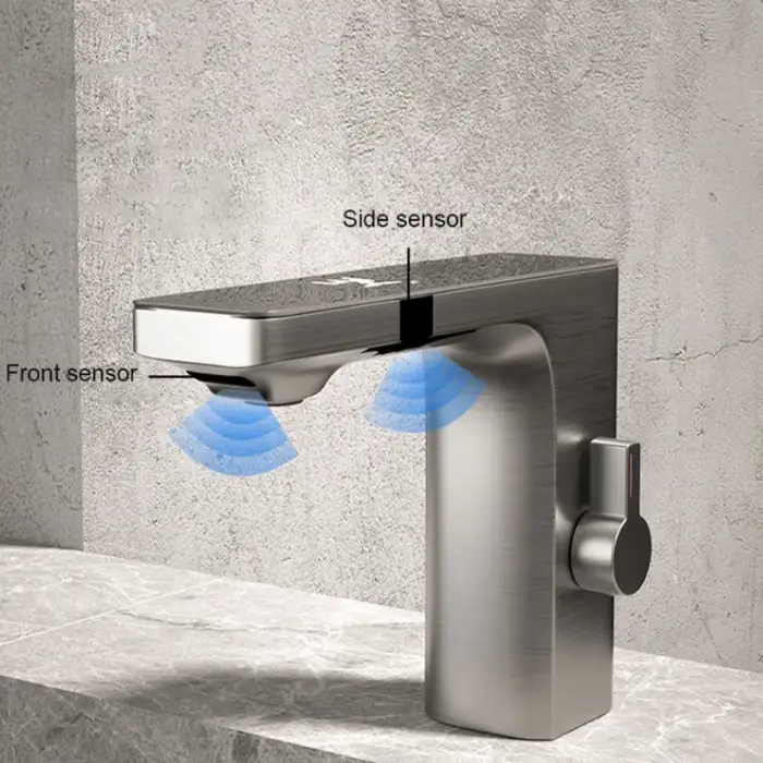The touchless sensor detects hand movements to activate the water flow, providing a hands-free experience.