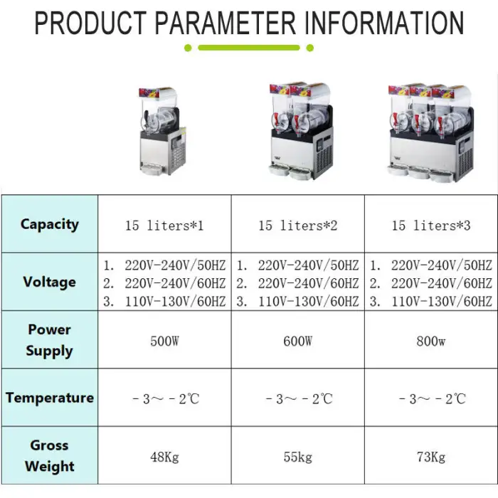 The slush machine operates on a voltage of 220V/50HZ, but it can also be customized to fit other voltage requirements.