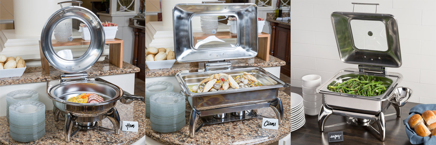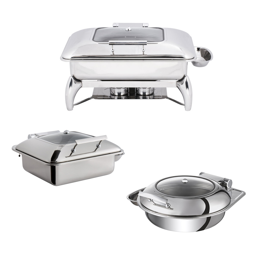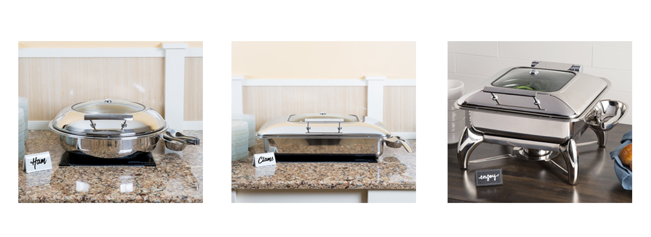 The Buffet Catering Chaffing Dish is available in round, square, and rectangle shapes.