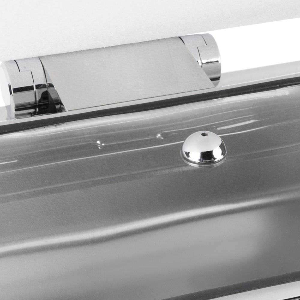 The design combines functionality with elegance, featuring a mirror-polished finish and convenient features to enhance the presentation and usability.