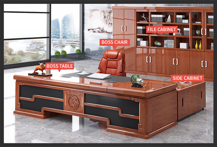 Our main products include boss desks, office desks, conference tables, office sofas, filing cabinets, reception desks, office chairs, and more.