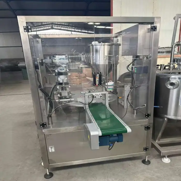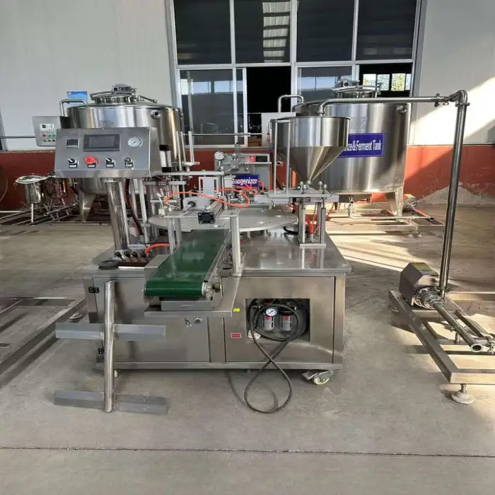 The machine is suitable for filling yogurt, milk, dairy products, juices, sodas, liquor, and other beverages.