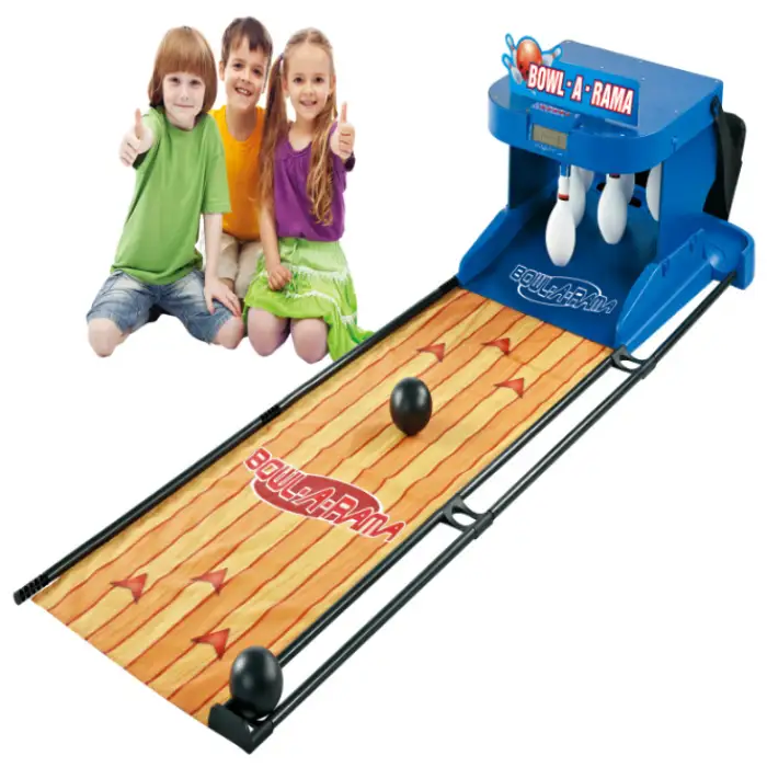 The game typically includes a standard set of bowling pins, designed for interactive play.