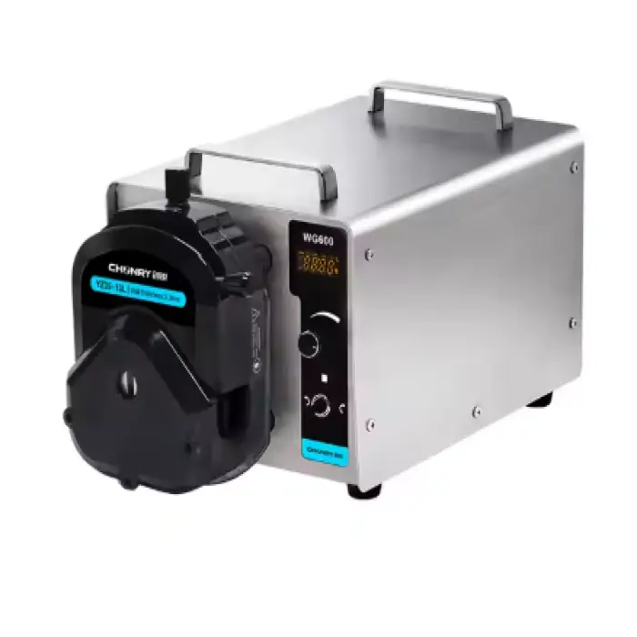 The CHONRY WG600 peristaltic pump has a maximum flow rate of 12,000 mL/min, allowing for efficient fluid transfer.