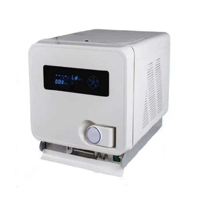 The autoclave is equipped with an LCD display, which allows for clear monitoring of the sterilization process.