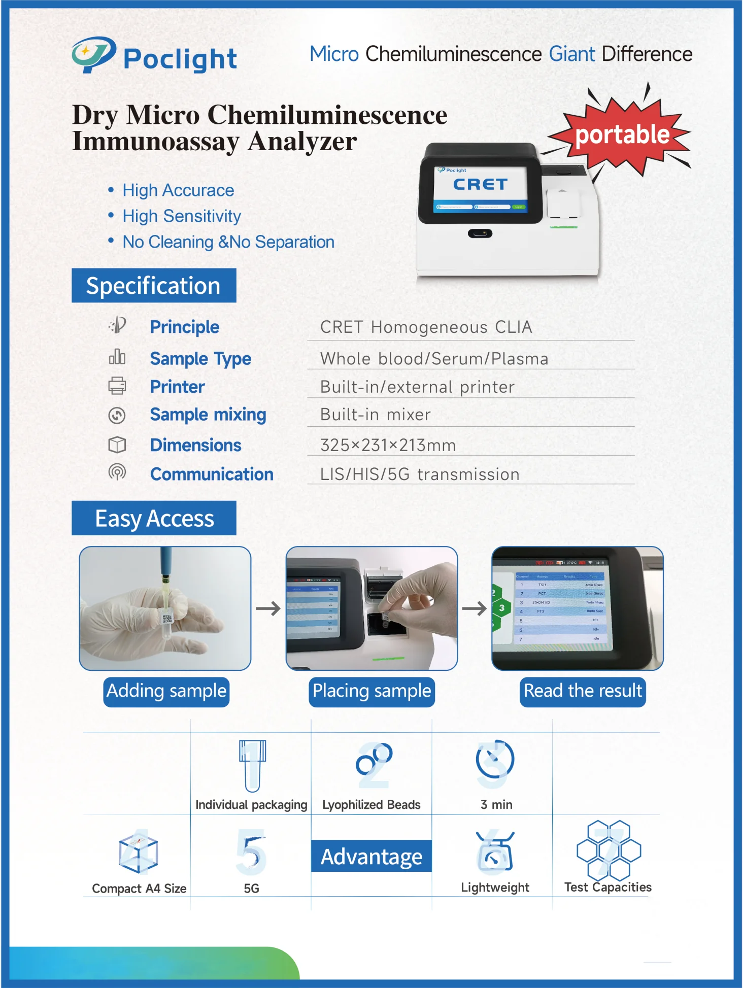 The CLIA 5000 supports LIS/HIS communication and 5G transmission for efficient data management.