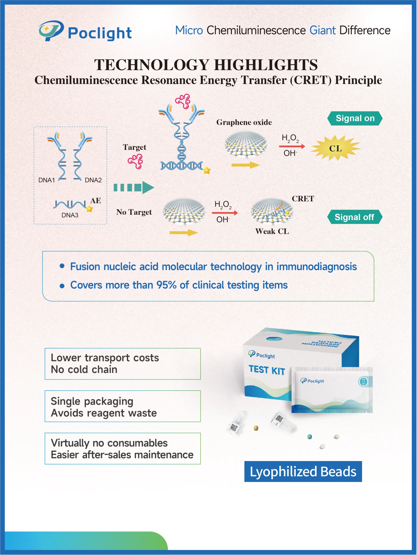 The CLIA 5000 operates based on the Chemiluminescence Resonance Energy Transfer (CRET) principle, which allows for rapid and accurate testing.