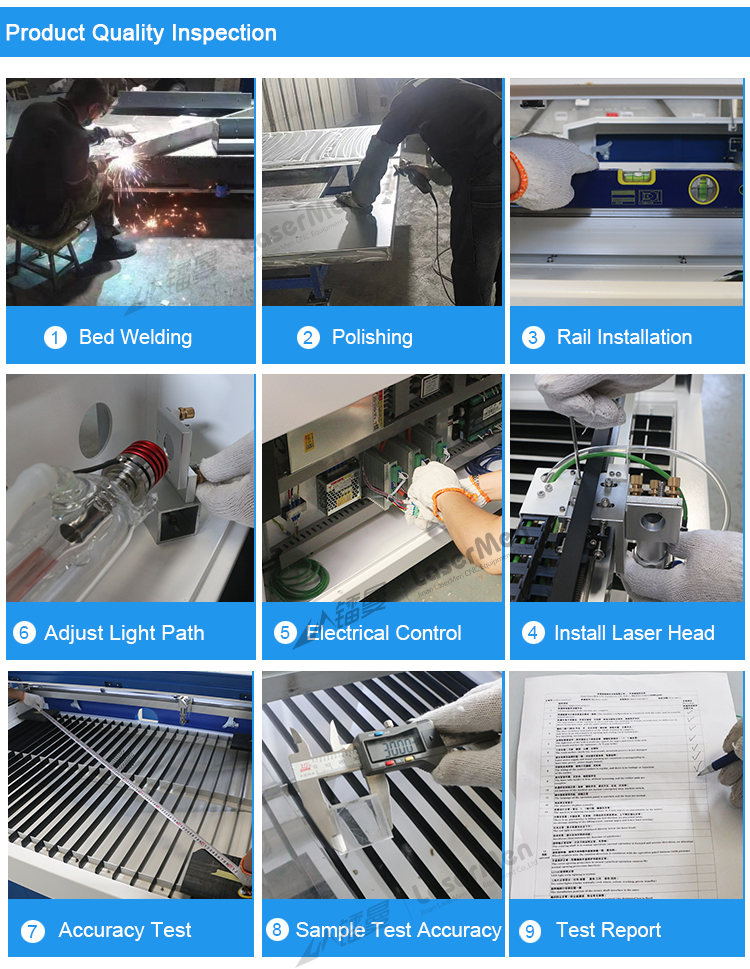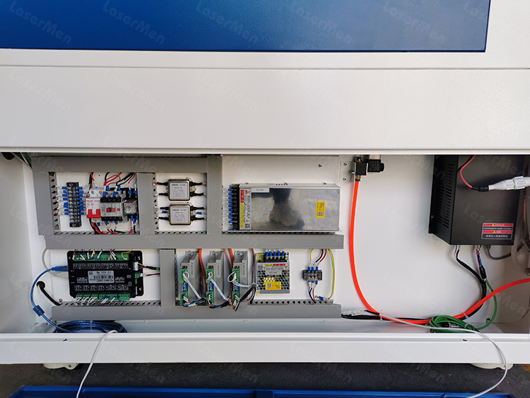 Standard inclusions are the CO2 laser tube, water cooling system, air-assist pump (air blowing), and exhaust fan. The standard package may also include a control system and basic tooling; optional extras (see below) are not always included.