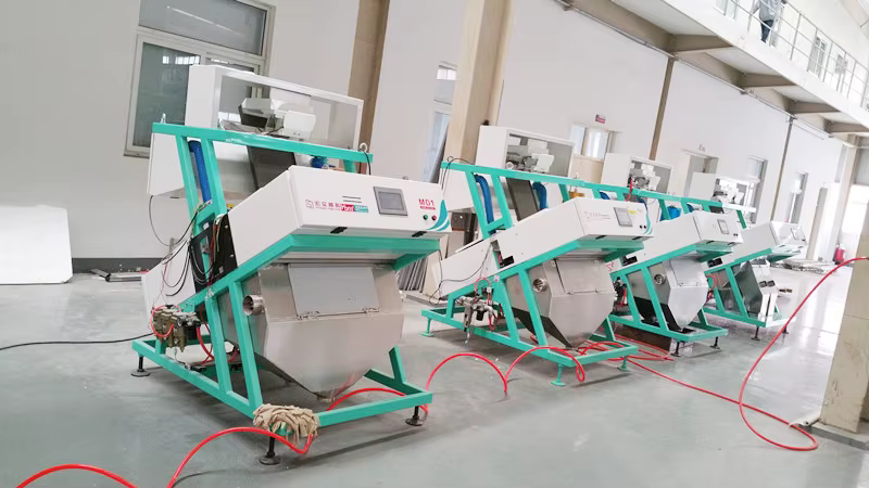 The machine can sort various types of grains, beans, and nuts, including coffee cherries, soybeans, peanuts, and other similar products.