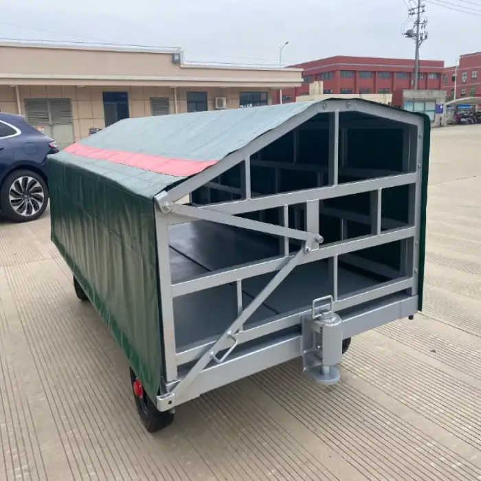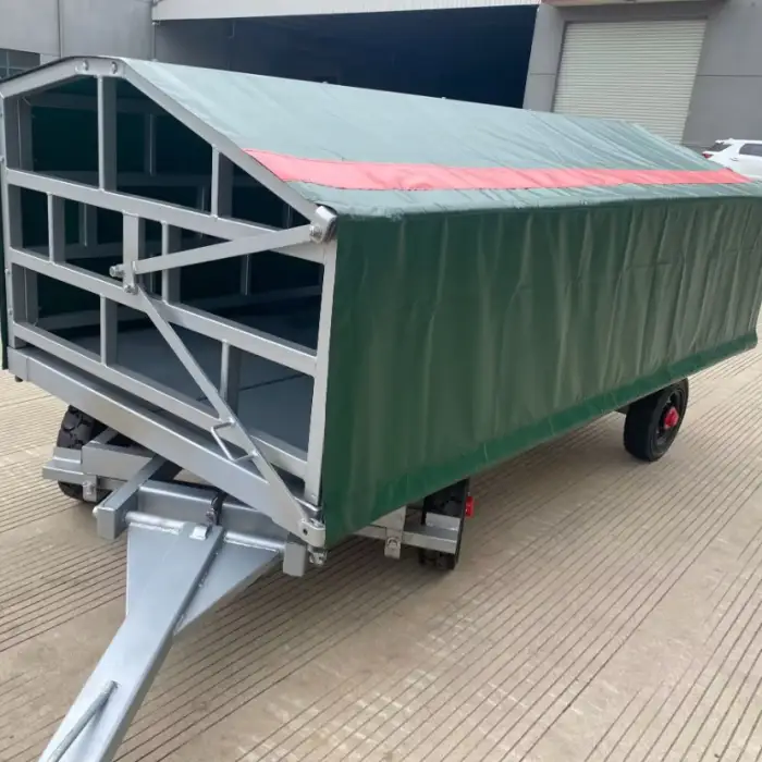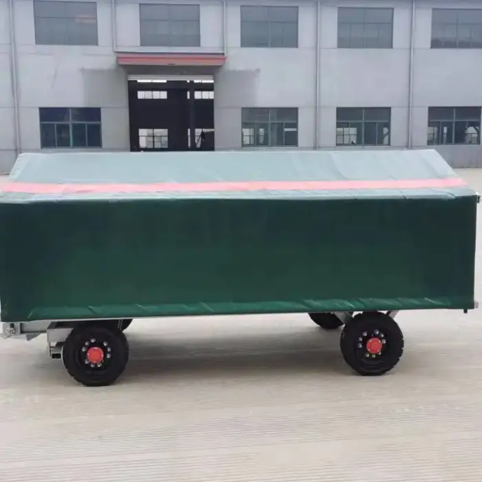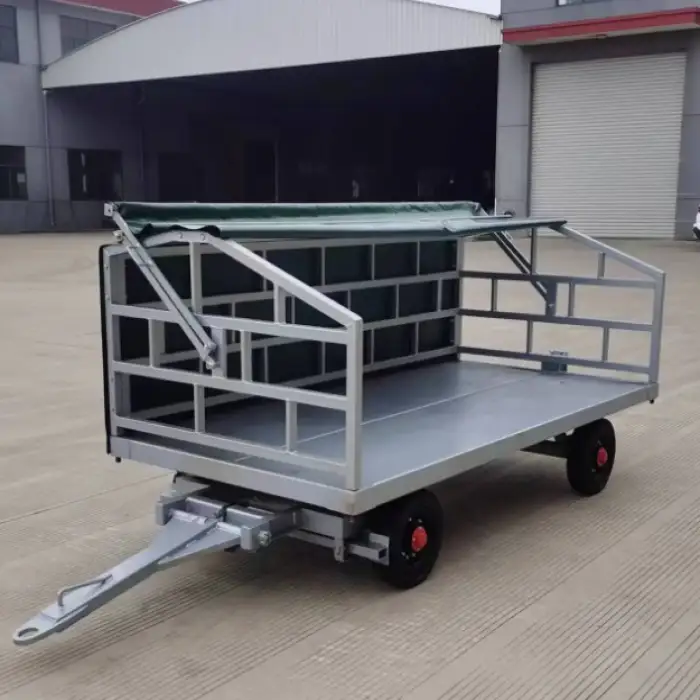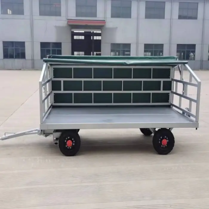 The trolley is equipped with pneumatic tires, which provide excellent stability and allow for smooth movement across various surfaces, including uneven floors and outdoor environments.