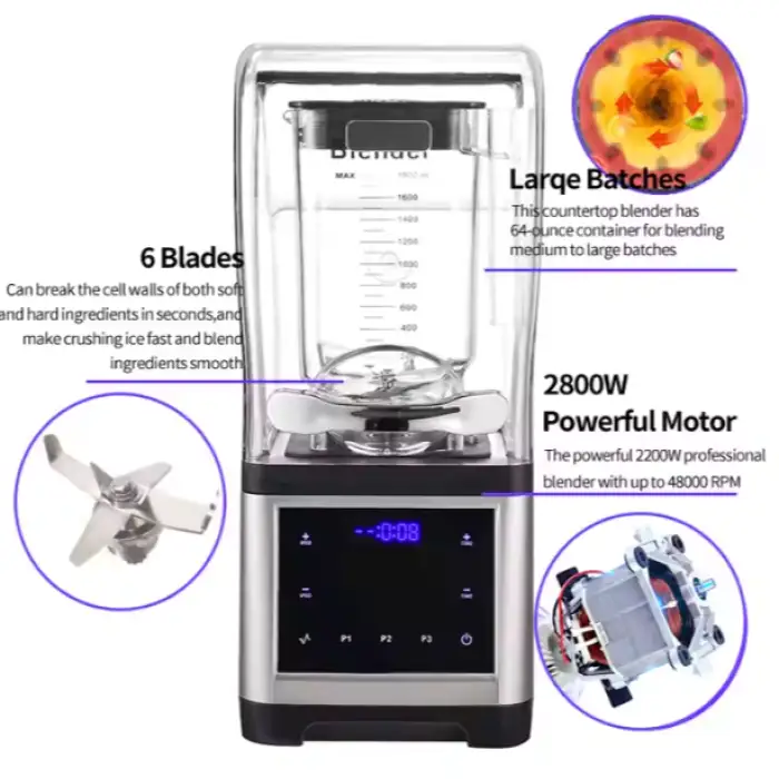 The blender operates quietly due to its sound cover, making it ideal for maintaining a peaceful environment.