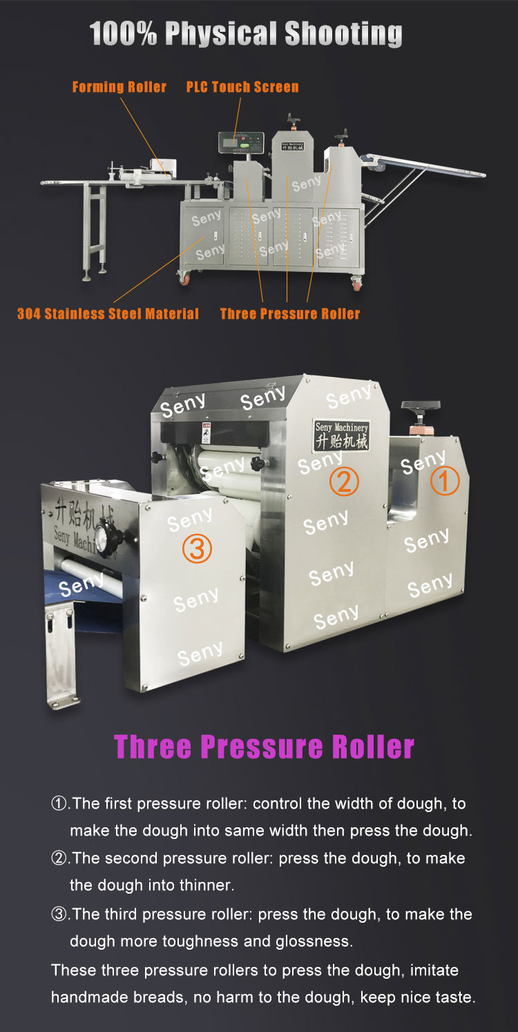 Routine maintenance includes daily cleaning of dough-contact surfaces and trays, regular inspection and lubrication of bearings and chains, checking belt tensions and conveyor rollers, and periodic electrical inspections. Follow the supplier's operation and maintenance manual for recommended schedules and approved lubricants/cleaning agents.