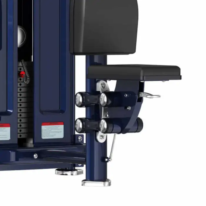 This multi-functional gym machine is designed for a variety of strength training exercises, including pec flys, rear deltoid workouts, and more, making it versatile for different fitness routines.