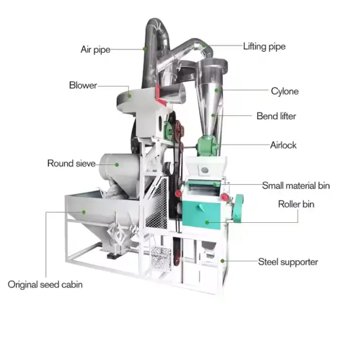 The Commercial Full Automatic Mill can process various grains including wheat, maize, corn, and rice.