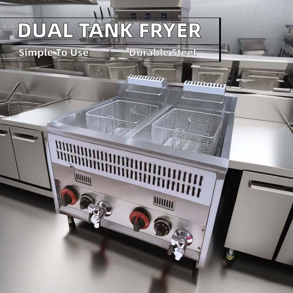 Yes. With two 17L tanks, durable stainless steel construction, and efficient gas heating, this fryer is designed for high-volume frying in fast food restaurants, cafés, bistros, food trucks, and catering operations.