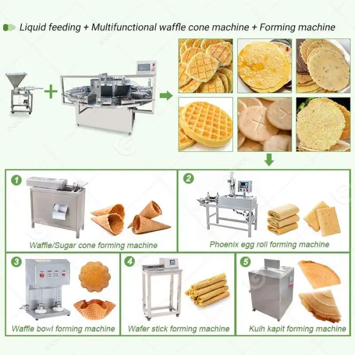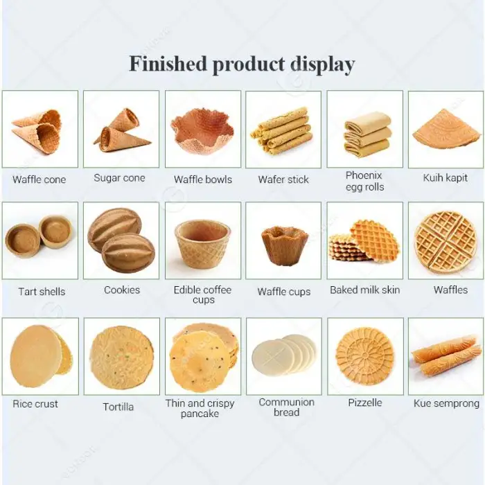 You can make various products including ice cream cones, egg rolls, and waffles in different shapes such as round, square, cone, and tube.
