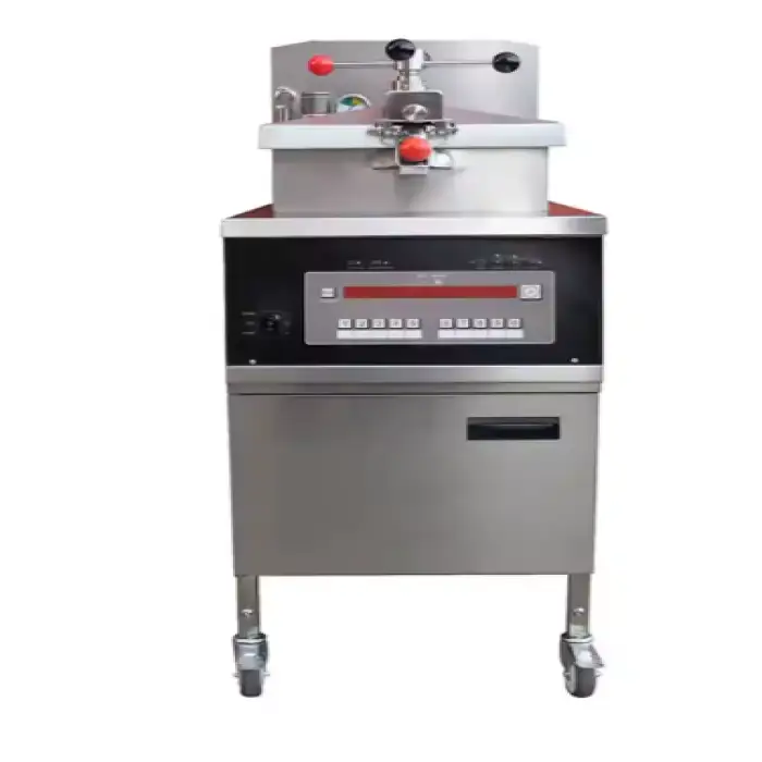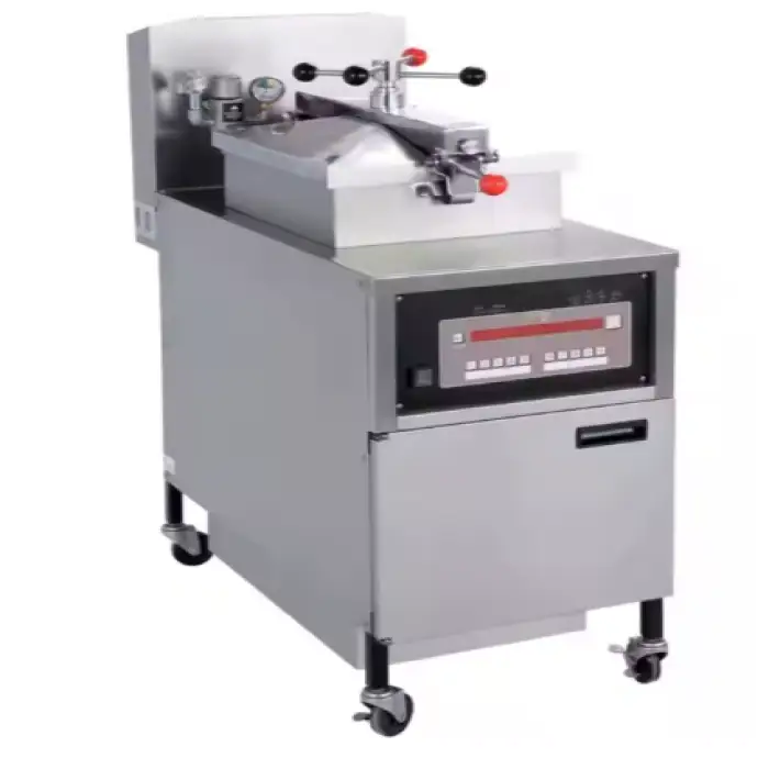 The gas-powered heating allows the fryer to cook chicken quickly and evenly, making it ideal for high-volume cooking.