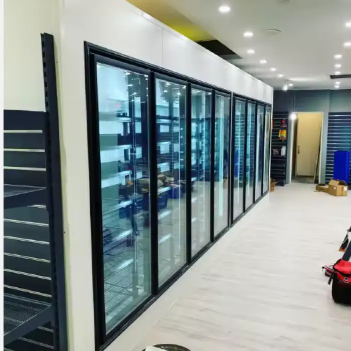 The glass doors are available in various colors, including black, silver, and golden, allowing you to match them with your store's design.