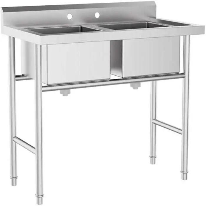 Commercial Stainless Steel Utility Two Compartment Restaurant Industrial Kitchen 2 Bowl Sink