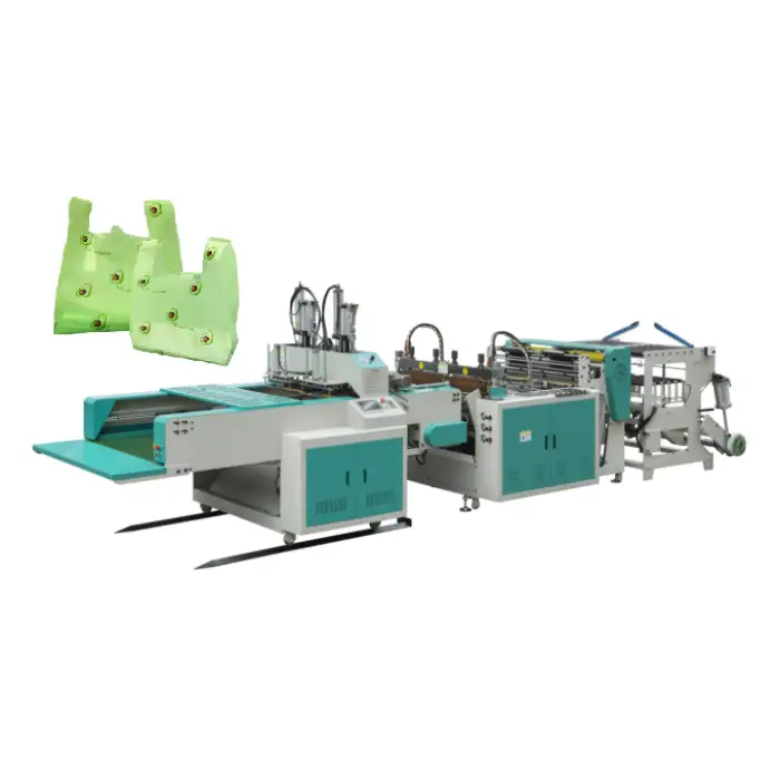 This machine is specifically designed to produce T-shirt bags, which are commonly used in retail and grocery stores.