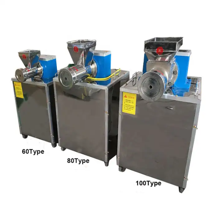 The Corn Cereal Rice Noodle Making Machine operates on either 220V or 380V with a power consumption of 2.2/2.5/3.0 KW.