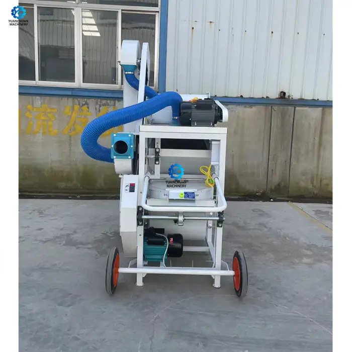 The machine is ideal for cleaning corn seeds, preparing sesame and soybean seeds, and sorting various grains in agricultural settings.