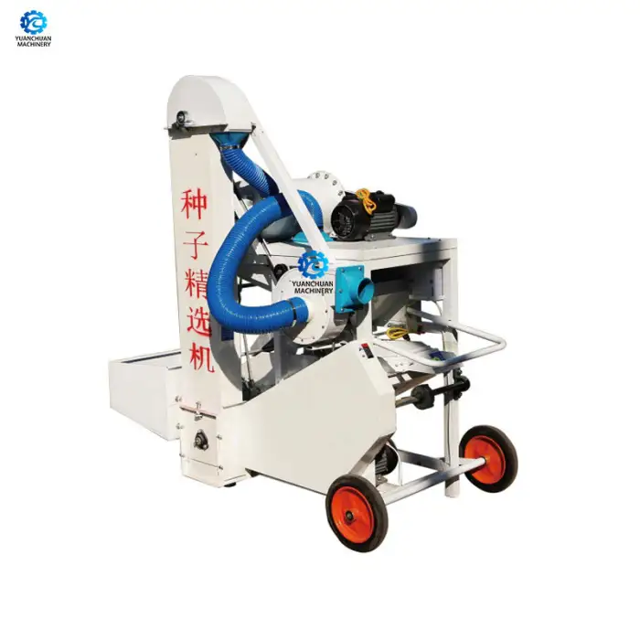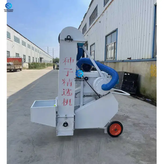 The machine is built with durable materials to ensure longevity and reliability in seed cleaning operations.