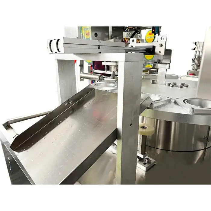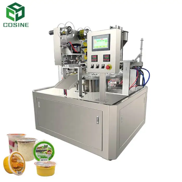 The COSINE Rotary Cup Filling Sealing Machine can handle a variety of materials including liquids, pastes, powders, and granules.