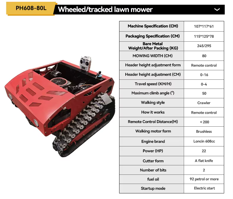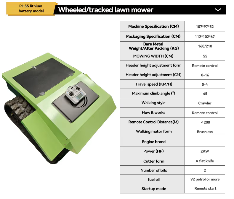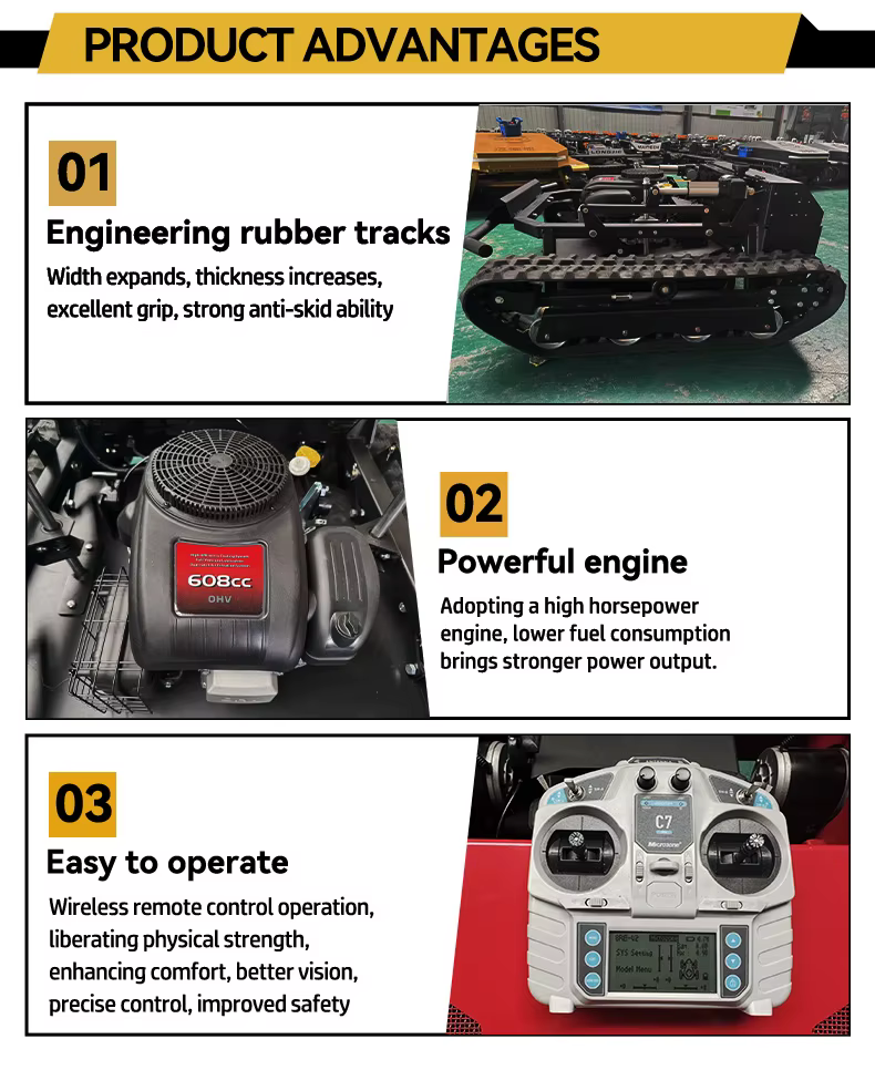 The Crawler Grass Mower Machine can efficiently handle a cutting area of up to 200m².