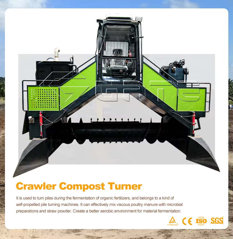The Crawler Type Compost Turner features a high capacity, adjustable working width, low noise operation, and a durable design, making it suitable for both large and small-scale composting.