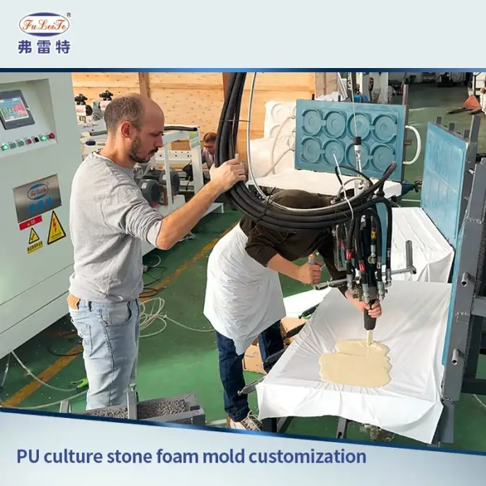 The machine is designed to produce rigid polyurethane foam, which can be used for creating PU stone skins, mushroom stones, custom cultural stone products, and for construction and design projects.