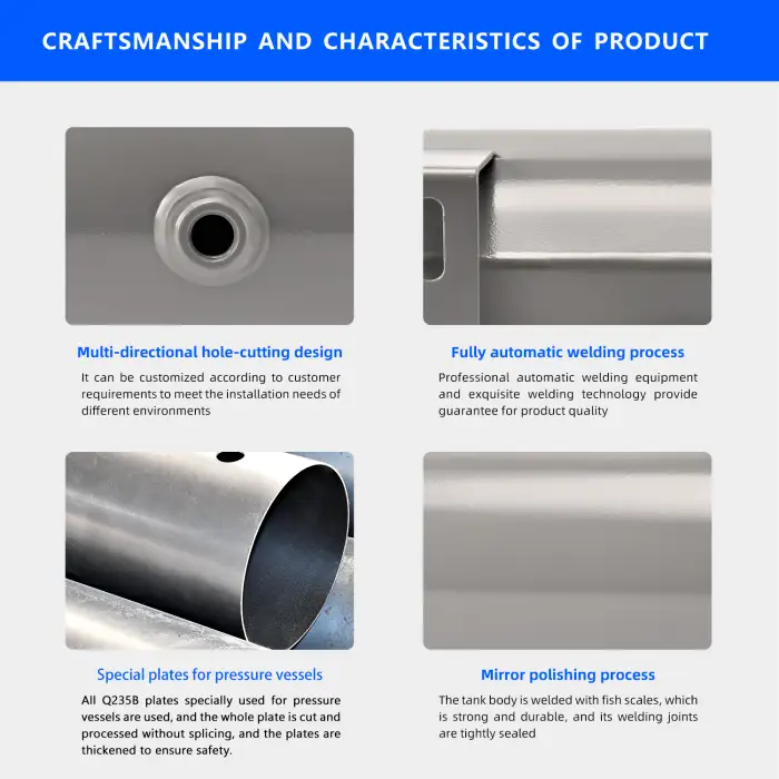 The tank is made from strong carbon steel, ensuring durability and the ability to handle high pressure.