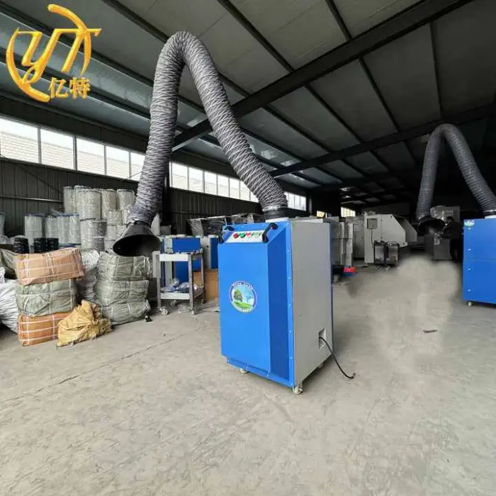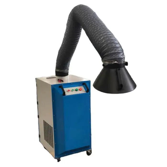 The primary function of the Custom Mobile Smoke Exhaust Device is to effectively remove harmful welding fumes and smoke from the air during plasma cutting and welding operations, ensuring a safer work environment.