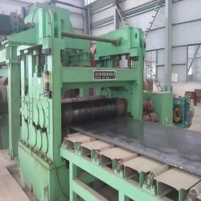 The machine is designed to cut metal sheets and coils into precise lengths.