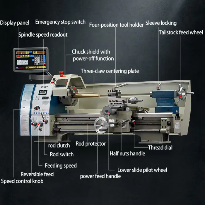 The D290V is equipped with 4 tool post stations for enhanced flexibility in operations.