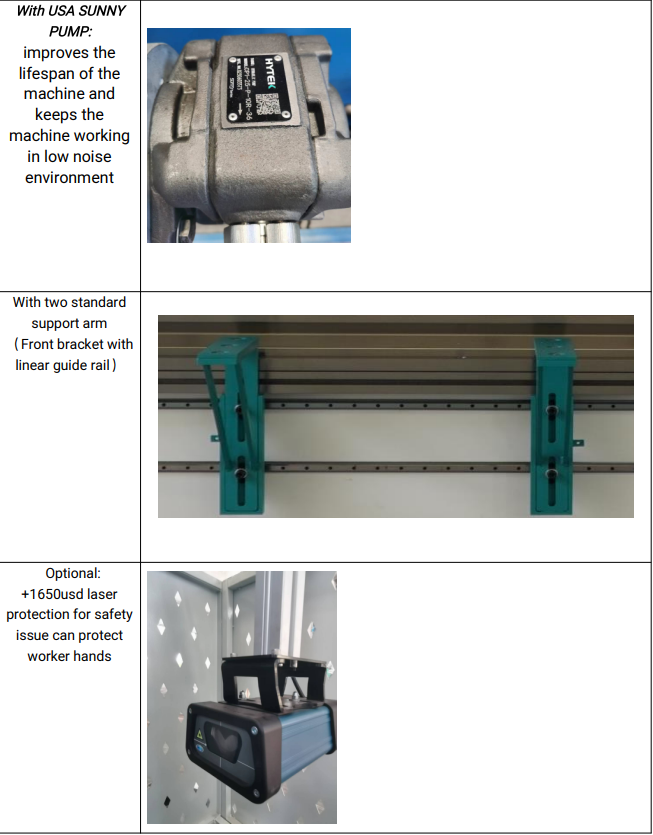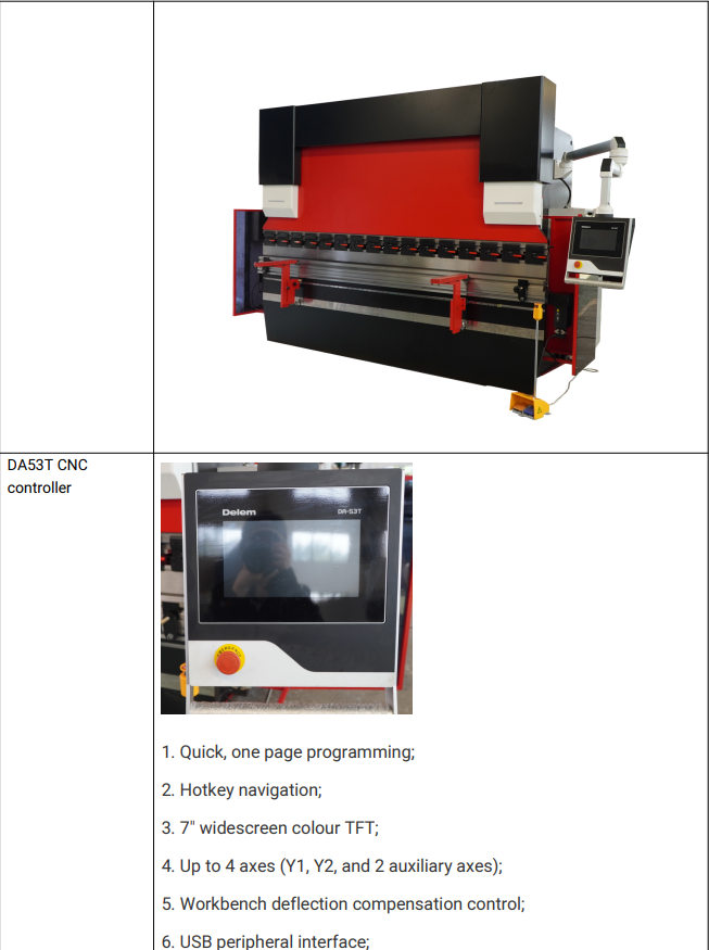 Key features include a stable structure for higher precision bending, manual crowning for improved accuracy, and the ability to add options and upgrades later.
