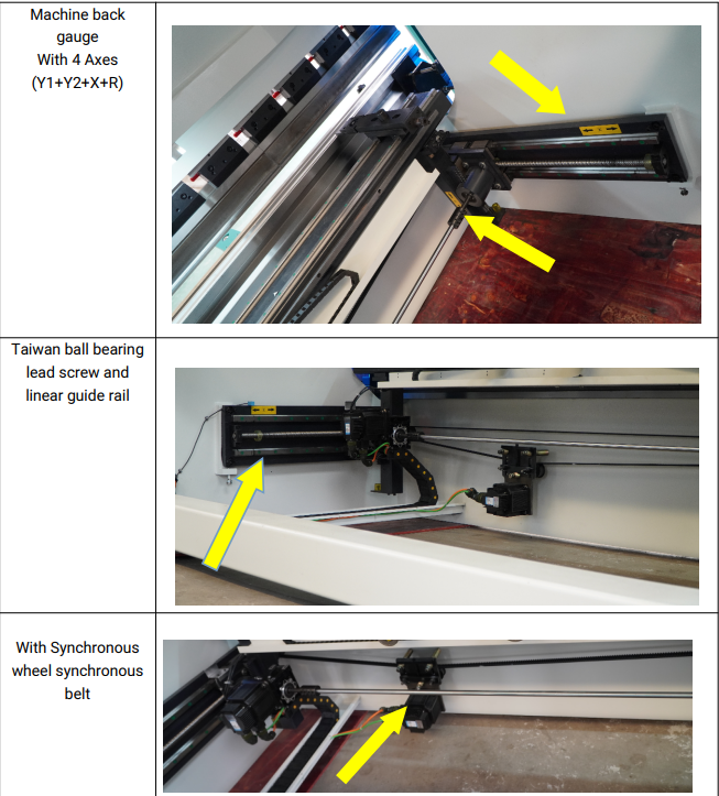 The 6 Axis CNC Backgauge allows for precise positioning of the material being bent, improving accuracy with fine adjustments up to ± 0.02 mm.