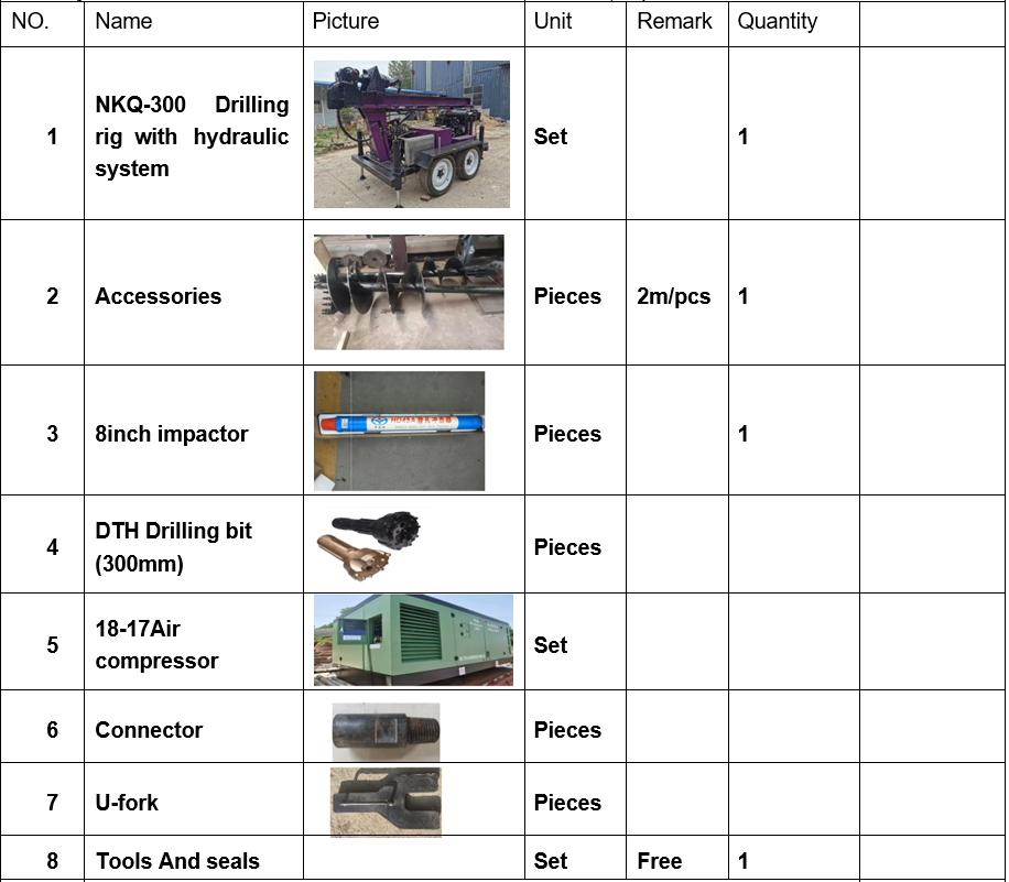 The rig can drill diameters ranging from 100 mm to 400 mm.