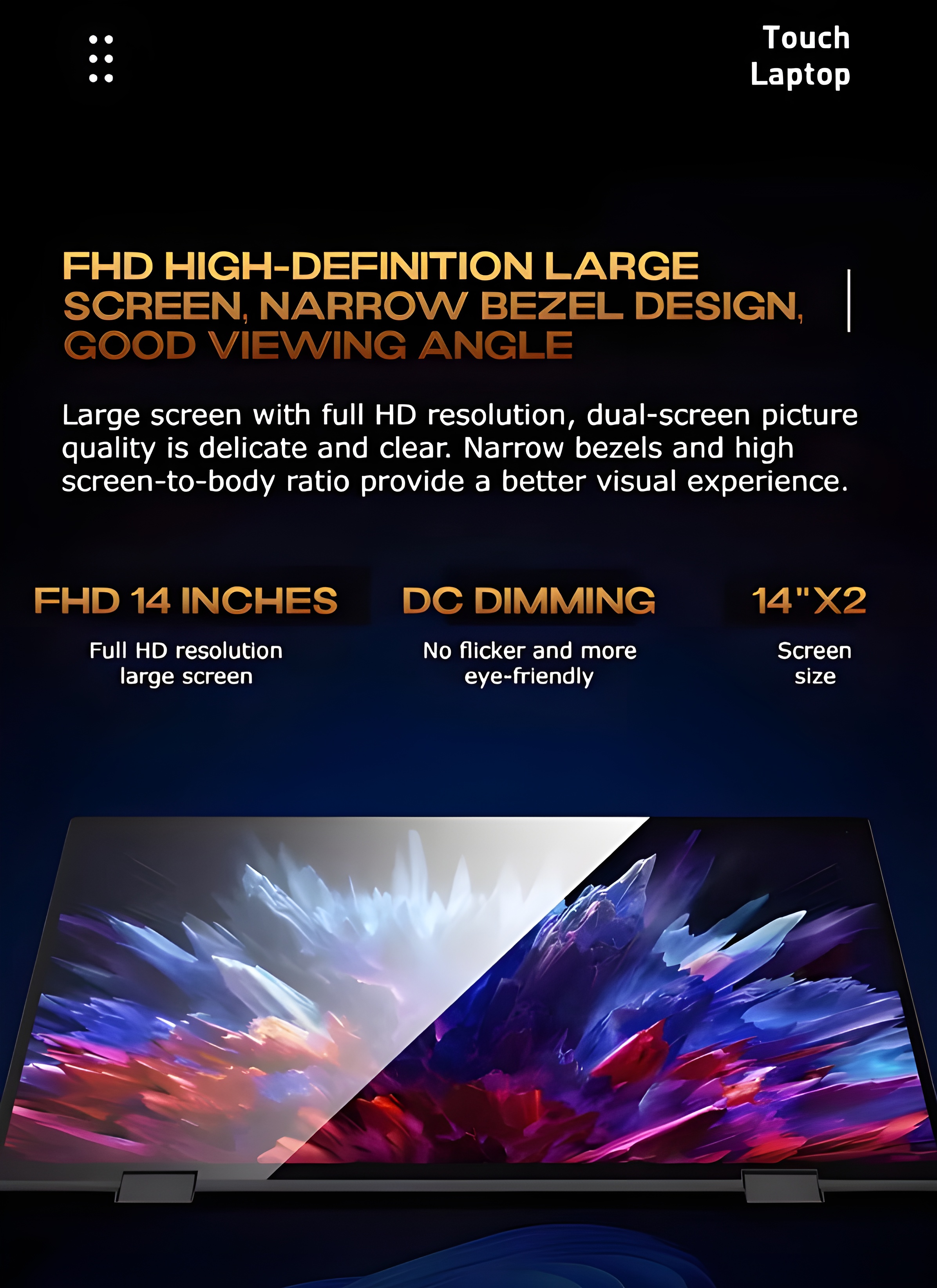 The DERE D14 Mac features a 14-inch display with a Full HD+ resolution of 1920x1280 pixels, offering sharp and clear visuals.