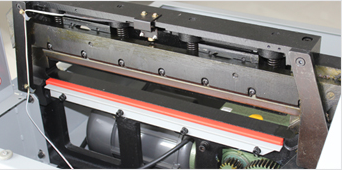 The machine presses the paper stack automatically before cutting to ensure stability. It uses a double-orbit push paper device to position and feed the stack accurately before each cut.