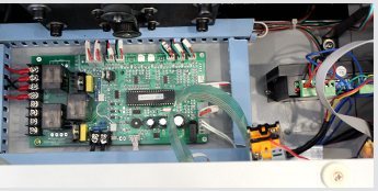 The machine uses a numerical-control circuit design with a dedicated chip motherboard and an independent control motherboard for position control and machine functions. For more advanced job storage or software integration options, consult the manufacturer or dealer.