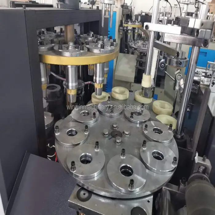 The machine has a production capacity of 50-70 cups or bowls per minute, allowing for efficient manufacturing.