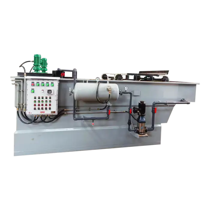 The DAF System operates by injecting dissolved air into the wastewater, which forms micro-bubbles that attach to suspended solids, allowing them to rise to the surface for easy removal.