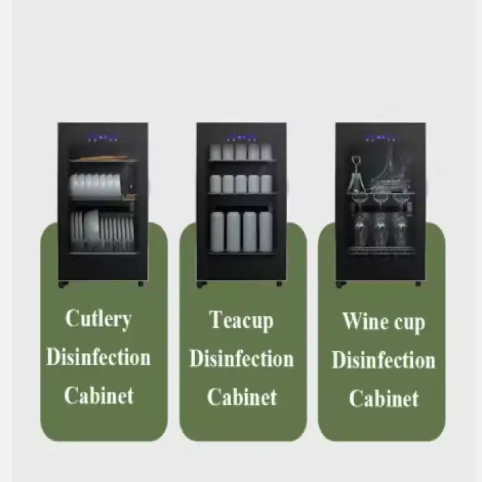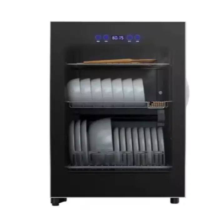 The cabinet uses a combination of UV, ozone disinfection, and infrared drying methods to ensure thorough sanitation of your tableware.
