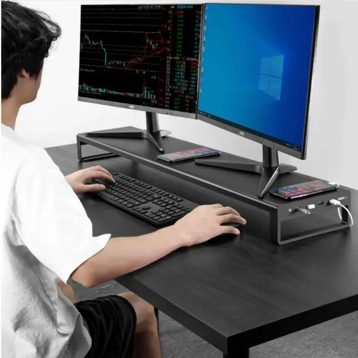 The weight capacity may vary, but it is designed to support most standard laptops and monitors safely.