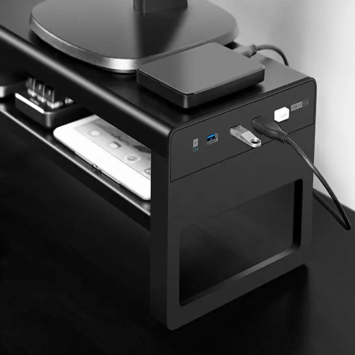 The organizer is available in black, providing a sleek and modern look that fits well with any desk setup.