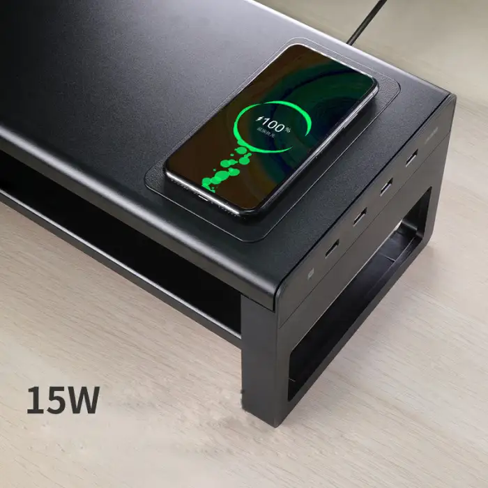 The 15W wireless charging feature allows you to charge compatible smartphones by simply placing them on the designated charging area on the stand.