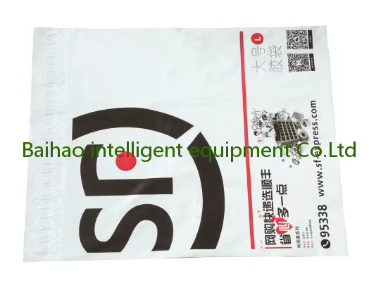 The machine can produce various types of plastic bags including courier bags, zipper bags, and biodegradable bags.