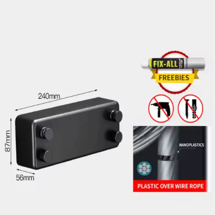 The clothesline can be installed on walls or behind doors, making it versatile for use in laundry rooms, bathrooms, kitchens, or wardrobes.